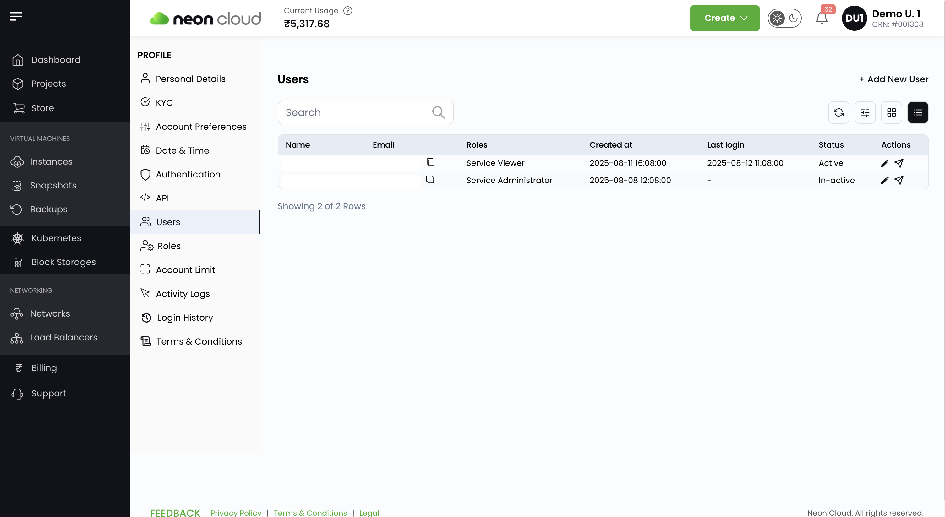 Navigate to Profile β Users and you can create/modify/delete users here and assign them to projects.