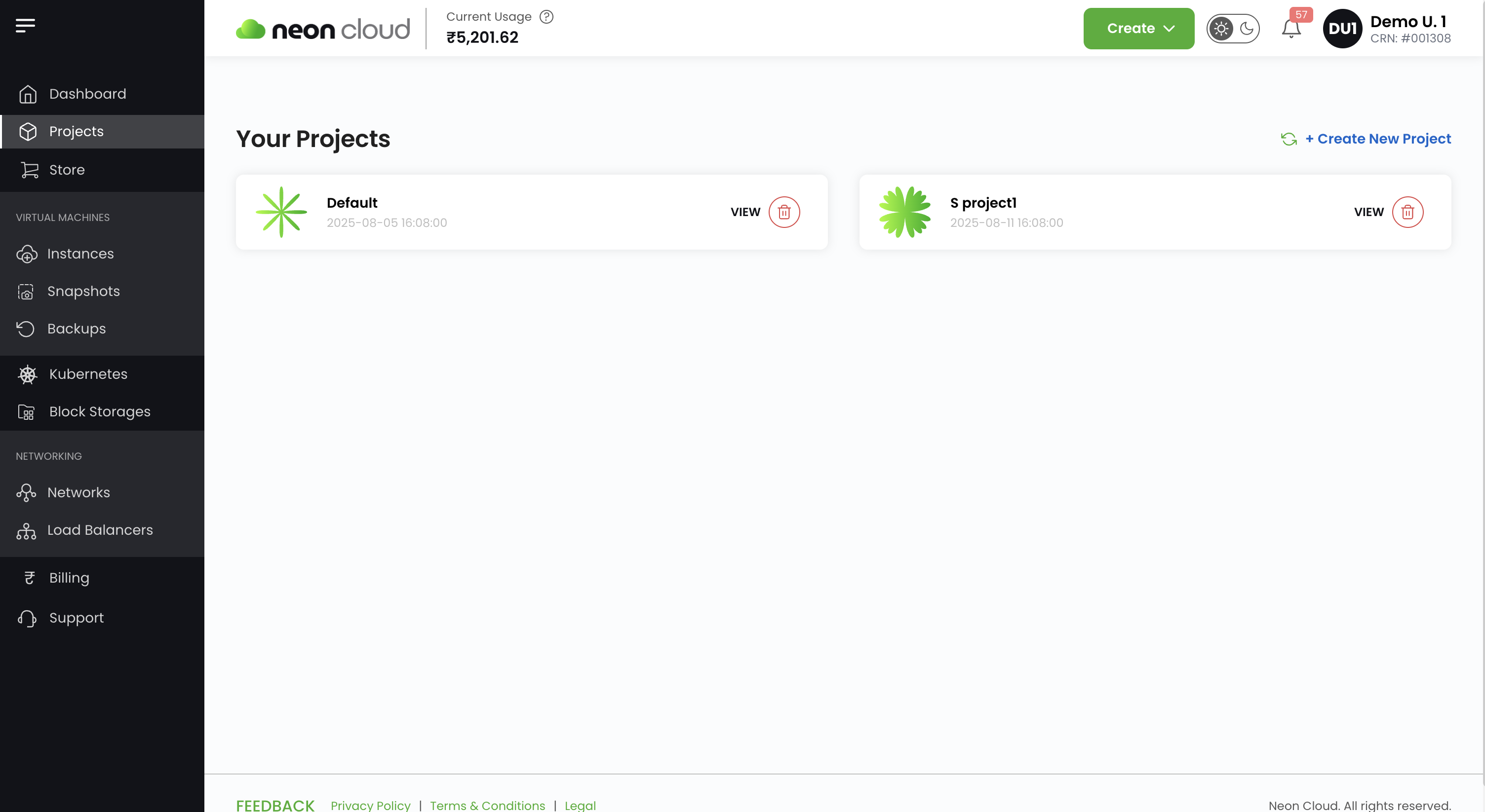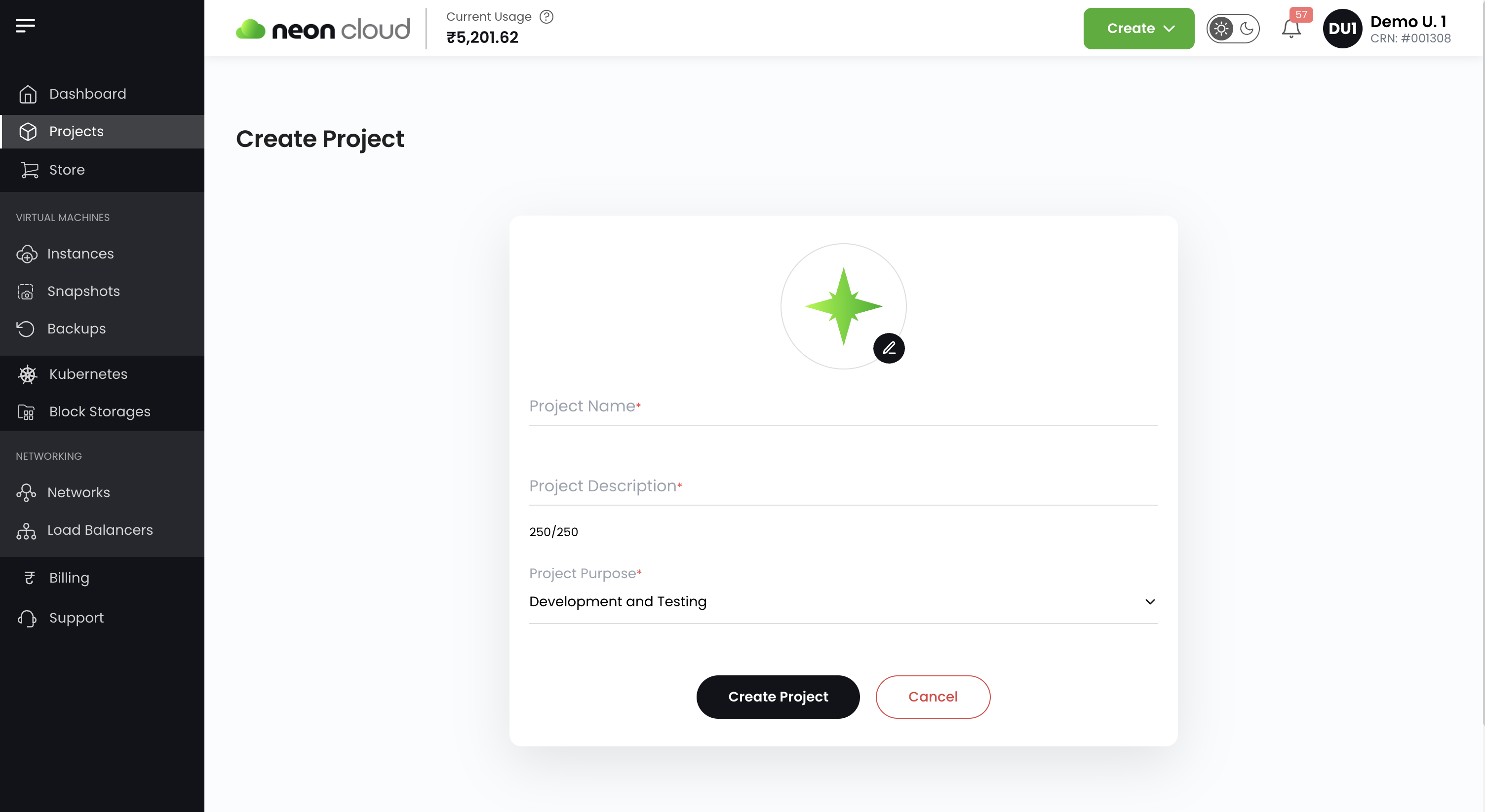 Click on "Create New Project" and enter project name, project description, and project purpose. Then click on "Create Project" and the new project will be created.