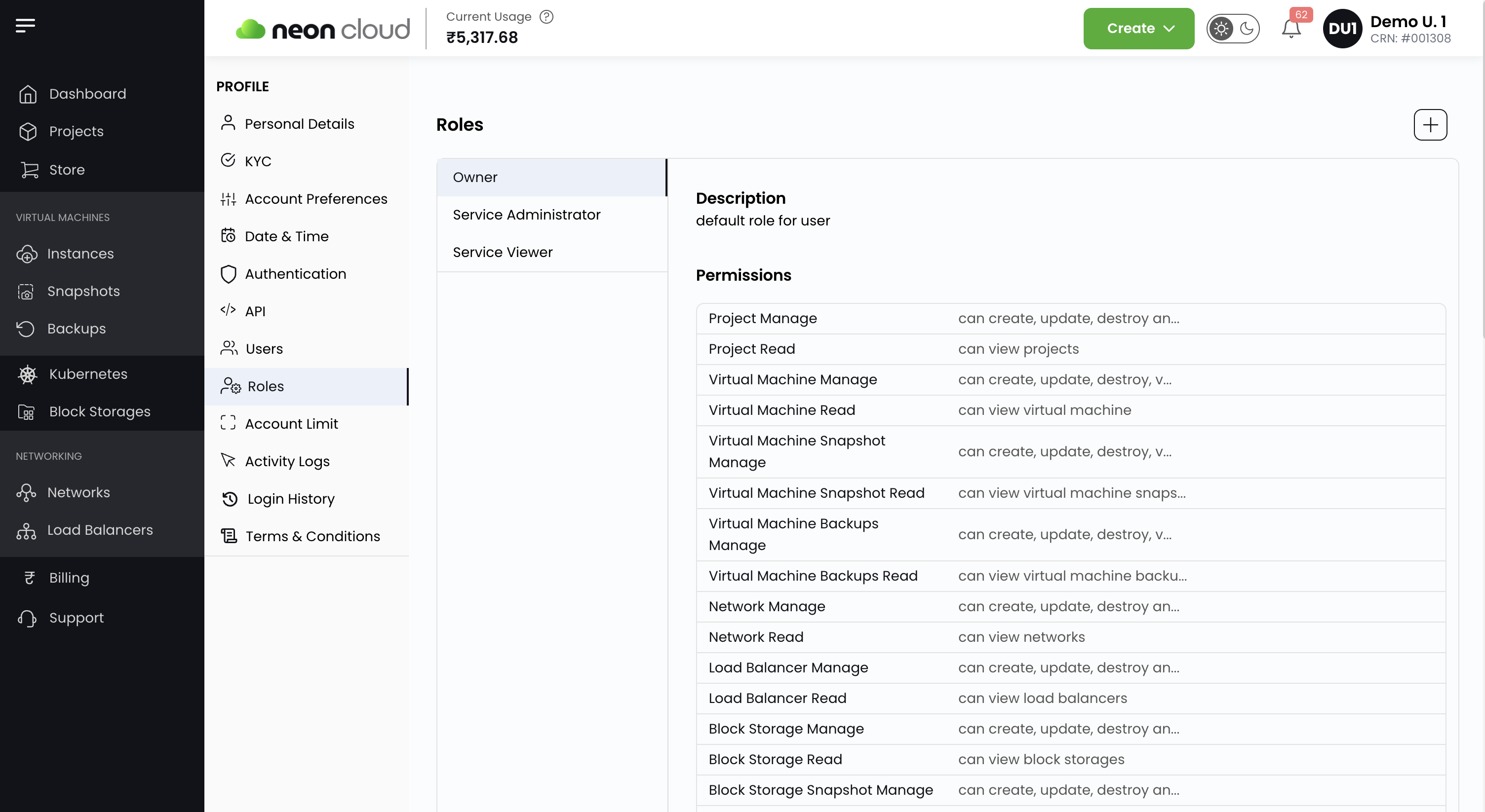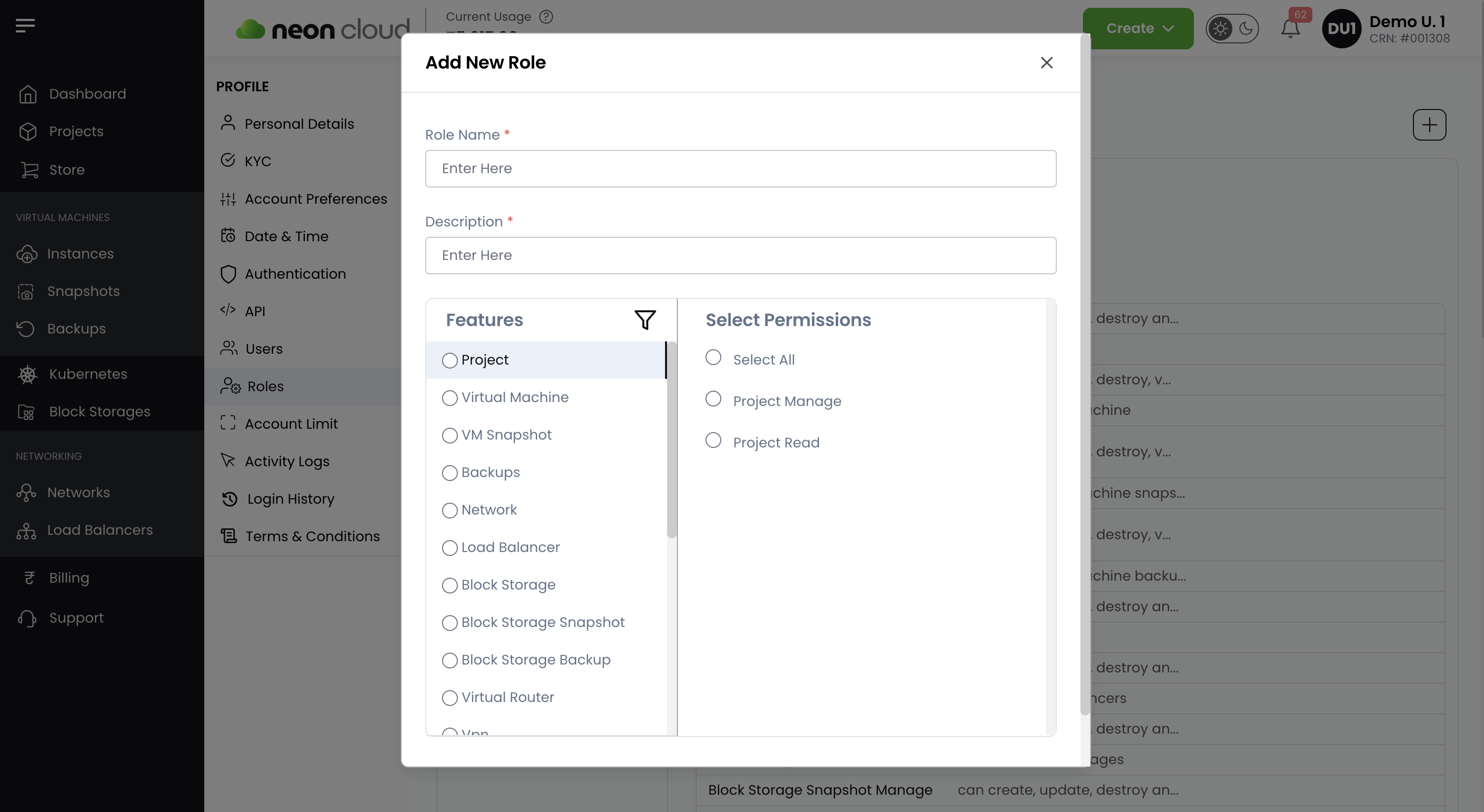 When adding a new role, you can choose specific services, features, and permissions you want to assign to users in this role.