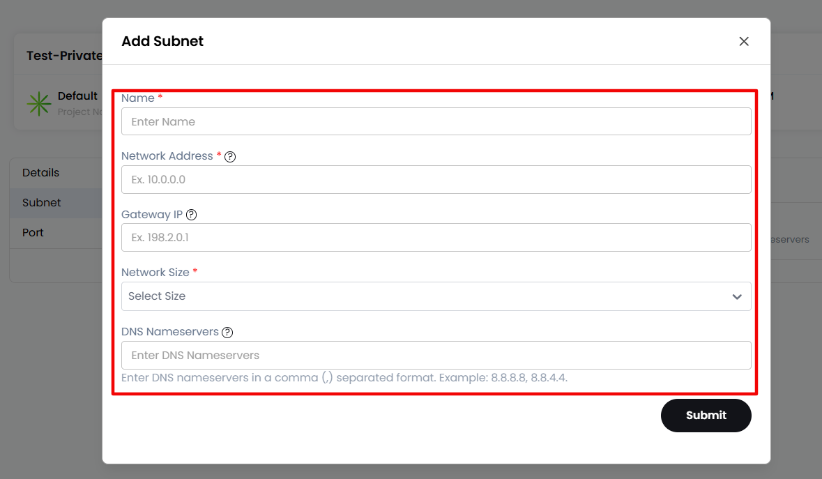 Network Address (CIDR), e.g., 192.168.50.0/24\